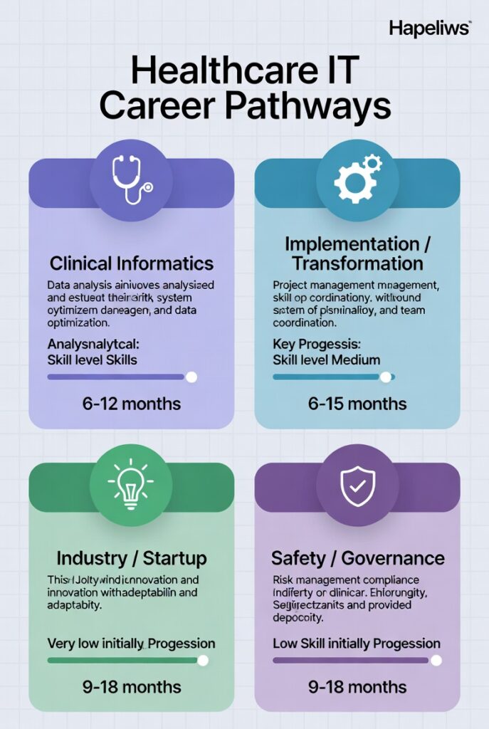 When doctors and nurses begin exploring digital health roles, they are often overwhelmed by the alphabet soup of job titles: clinical informaticist, digital nurse specialist, CNIO, CMIO, CCIO, clinical safety officer, medical director (health tech), clinical AI lead, virtual care lead, and many more. Behind the jargon, there are really only a handful of core career paths that suit different personalities, clinical backgrounds, and life priorities. Understanding these main routes helps you stop feeling lost and start recognizing which direction actually fits you—your strengths, your tolerance for meetings, your appetite for change management, and whether you want to stay close to patients or move further into strategy and product.
